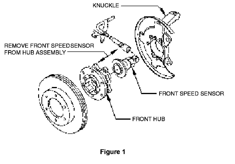 2. Remove the front hub assembly from the knuckle. Refer to the Front Hub and Disc section of the Service Manual (see figure 1).