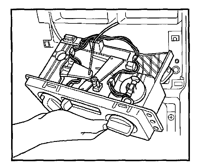 6. Pull the control lever assembly out and disconnect the fan switch and air conditioning switch connectors.