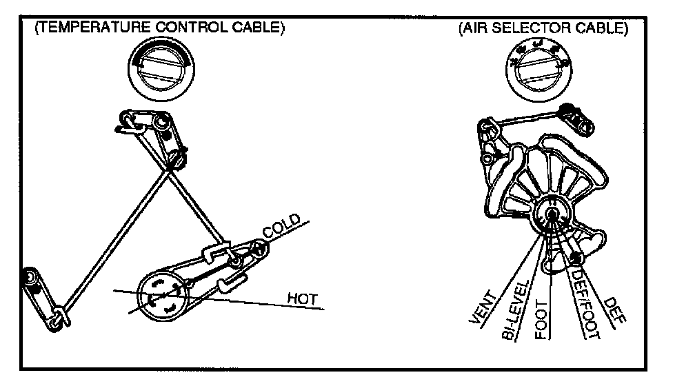 2. Connect the control cable at the "DEFROST" position of the mode control link of the heater unit and secure it with the clip.
