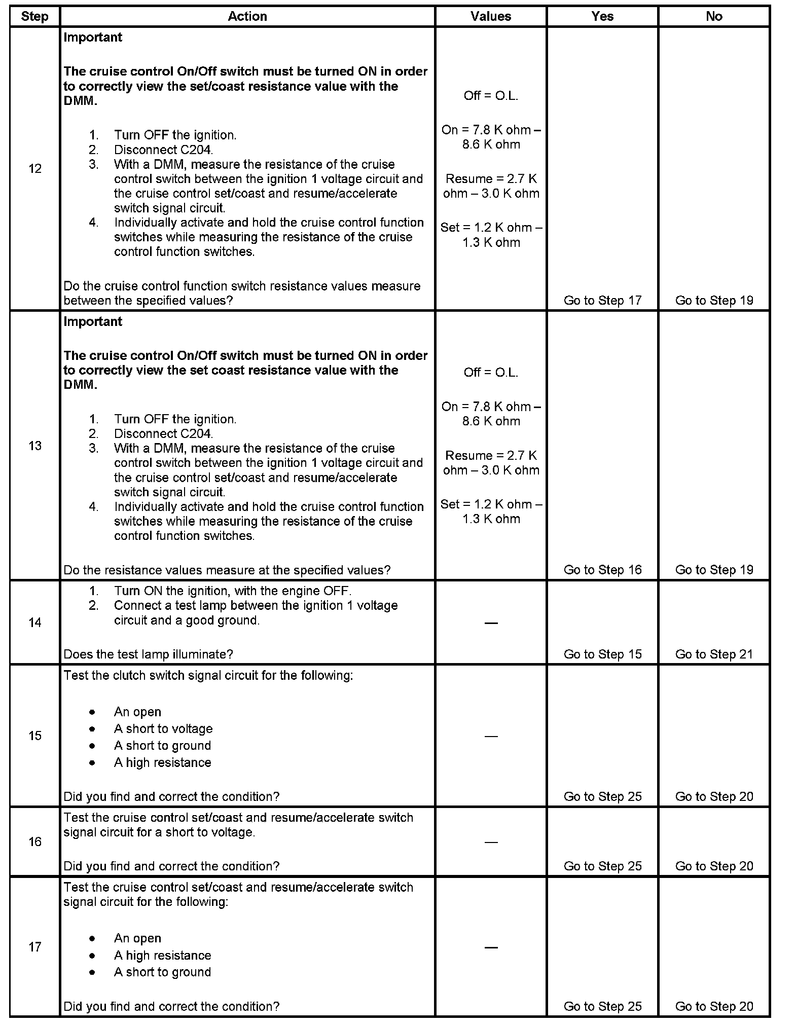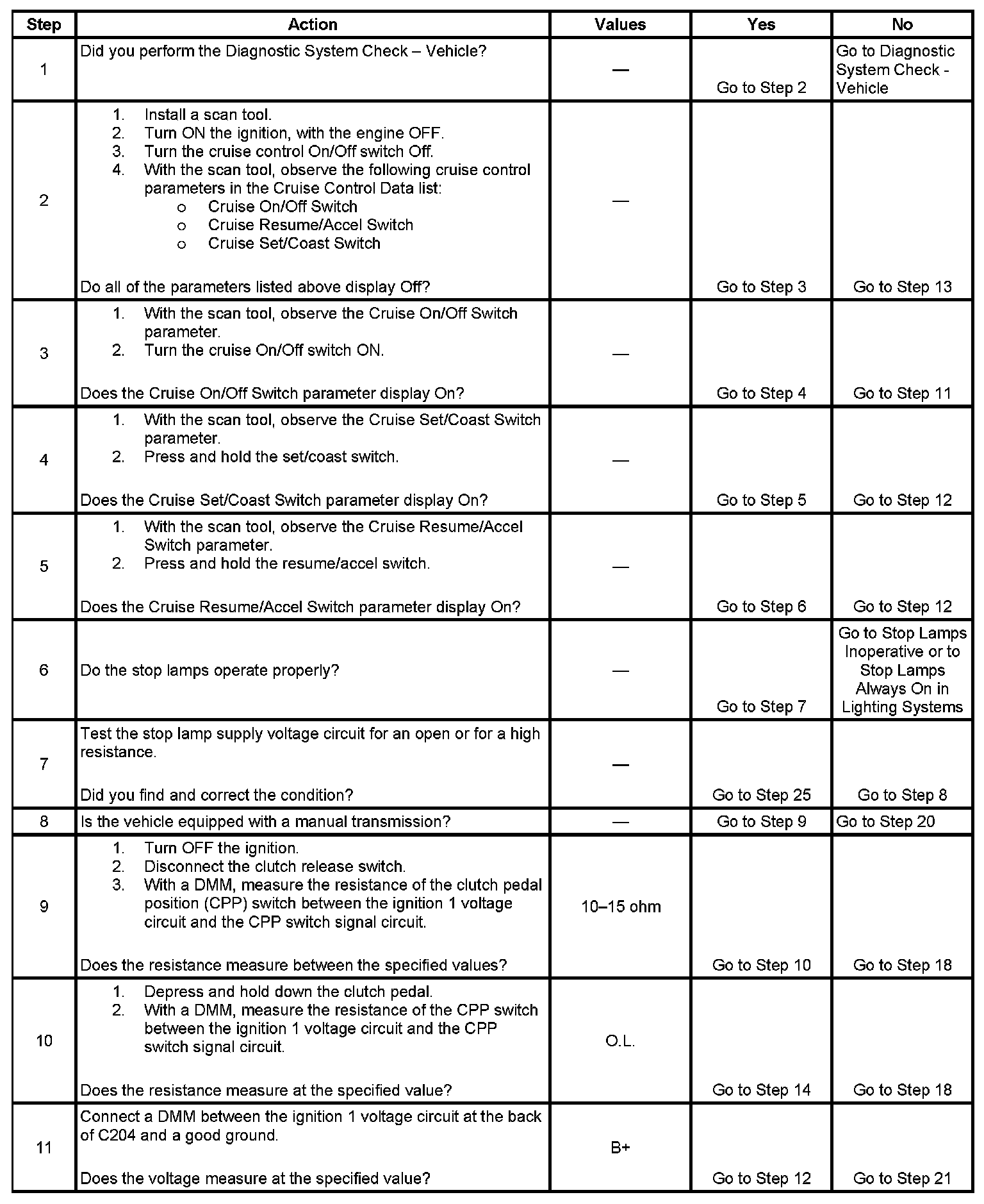 - Ensure that the following cruise control switches are not stuck in the engaged position: