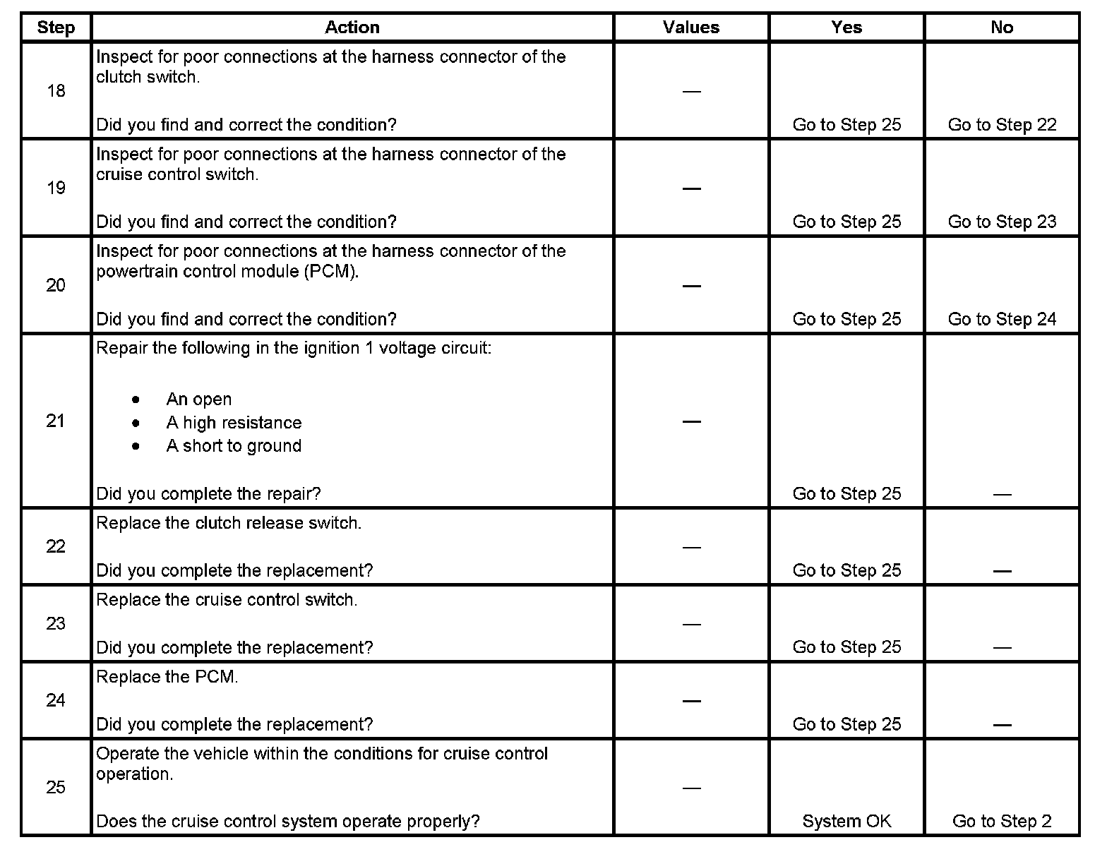 - Inspect for proper adjustment of the TCC brake/cruise release switch.