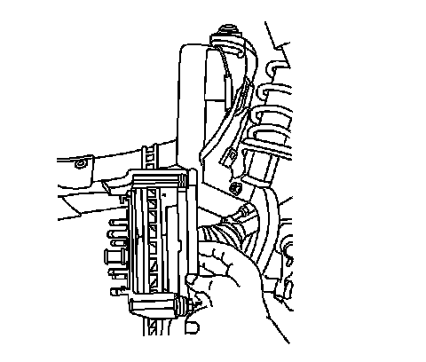 3. Remove the brake caliper assembly. Refer to Front Brake Caliper Replacement.