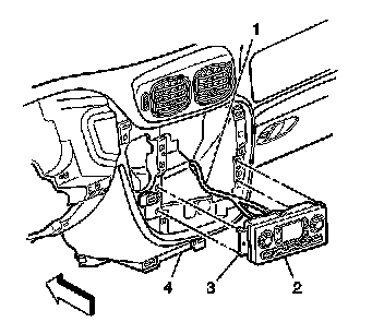 3. Depress the HVAC control module tabs (3) and remove the HVAC control module (2) from the I/P (4).