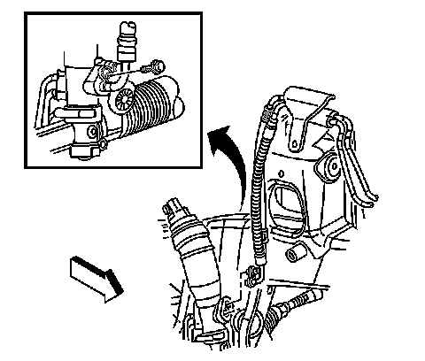 Notice: Clean the power steering gear inlet and outlet ports thoroughly of any debris. Failure to do so could result in contamination and damage to the power steering system components.
