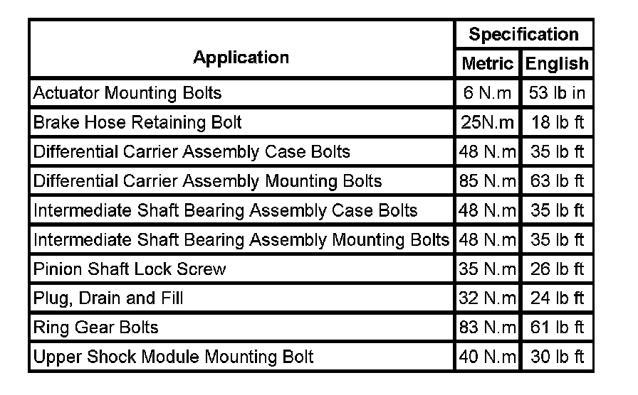 Fastener Tightening Specifications: