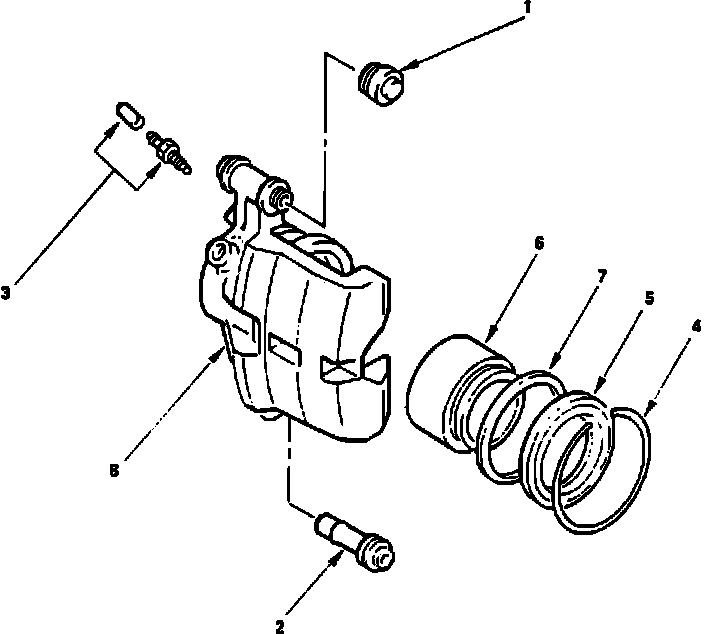 3. Inspect slide pin, piston seal and piston boot for wear, bending, distortion, cracks corrosion or other conditions and replace, if necessary.