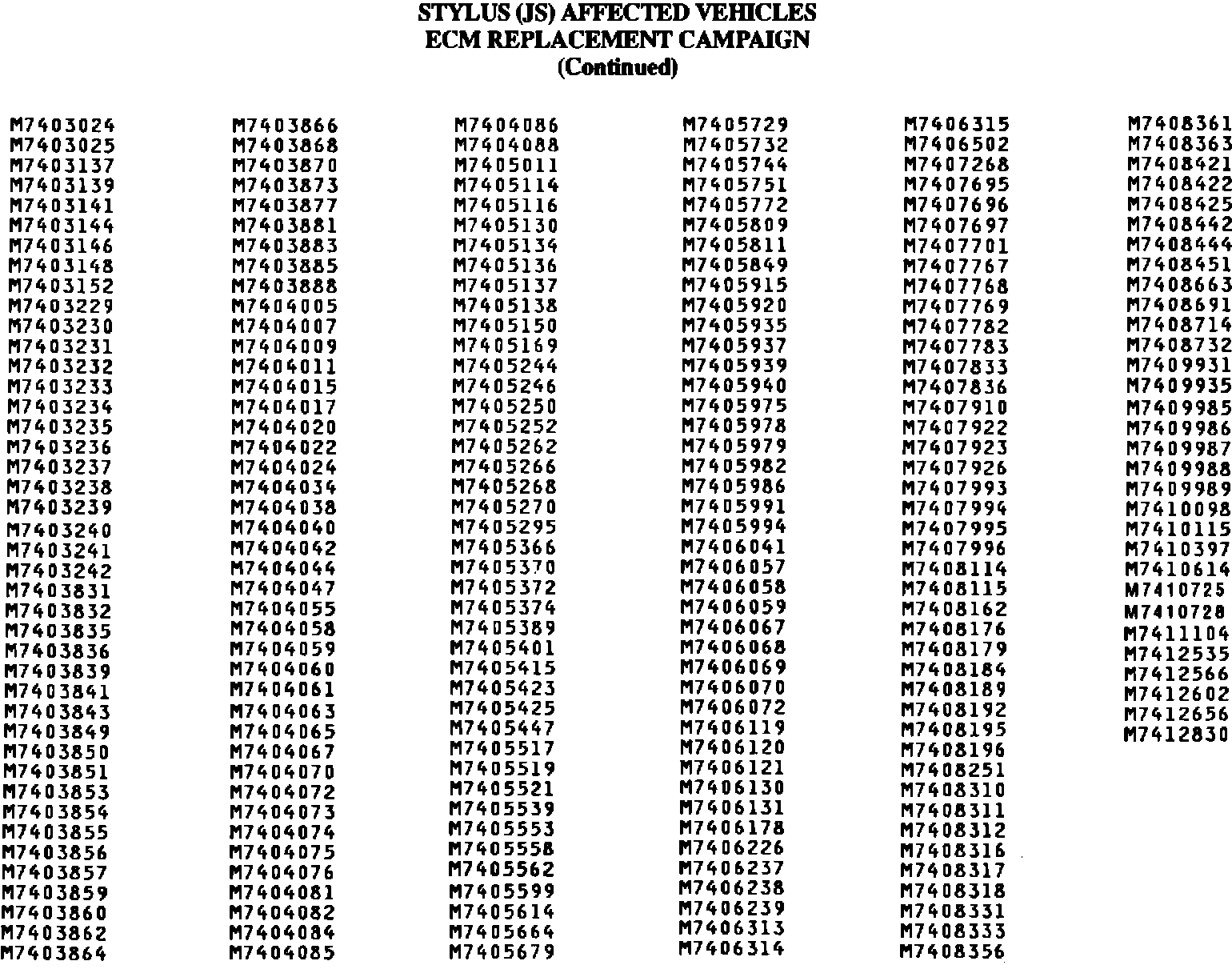 Stylus ECM Replacement List