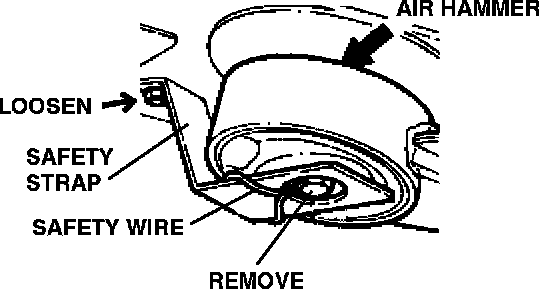 5. Remove safety wire securing radius arm mounting bolt and remove bolt.