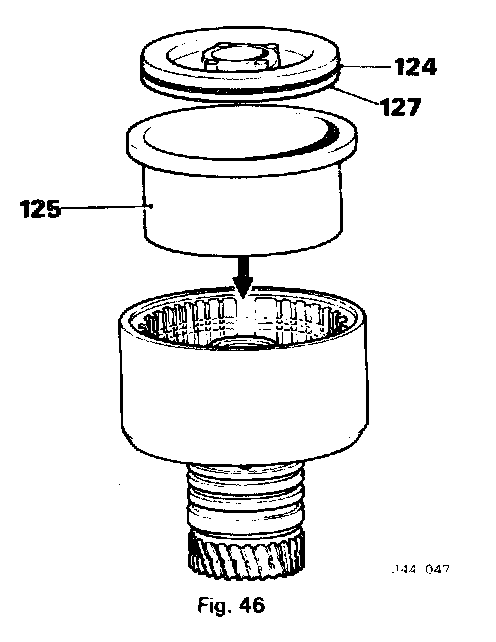 125. Position the rear clutch piston replacer tool 18G 702 in the clutch drum (Fig. 46).