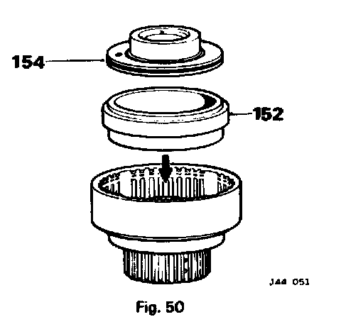 152. Position the front clutch piston replacer tool 18G 1107 in the clutch drum (Fig. 50).