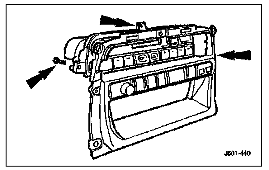 1. Position air conditioning switch control module on radio console and install module securing screws.