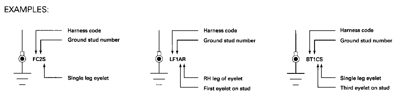 HARNESS CODE + GROUND STUD NUMBER + EYELET STUD POSITION (A, B, C) + EYELET DESIGNATION (S, L, R)