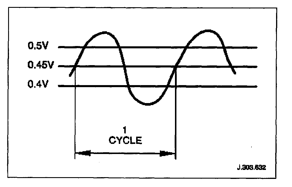 2. Check the voltage of the sensor output: Alternates between less than 0.4V at feed back engine conditions and in excess of 0.5V, see graph.