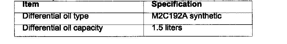 Rear Drive Axle/Differential Specifications