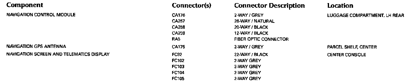 Refer to Vehicle/Locations for detailed information and illustrations regarding the location and identification of harnesses, relays, grounds and control modules. Locations