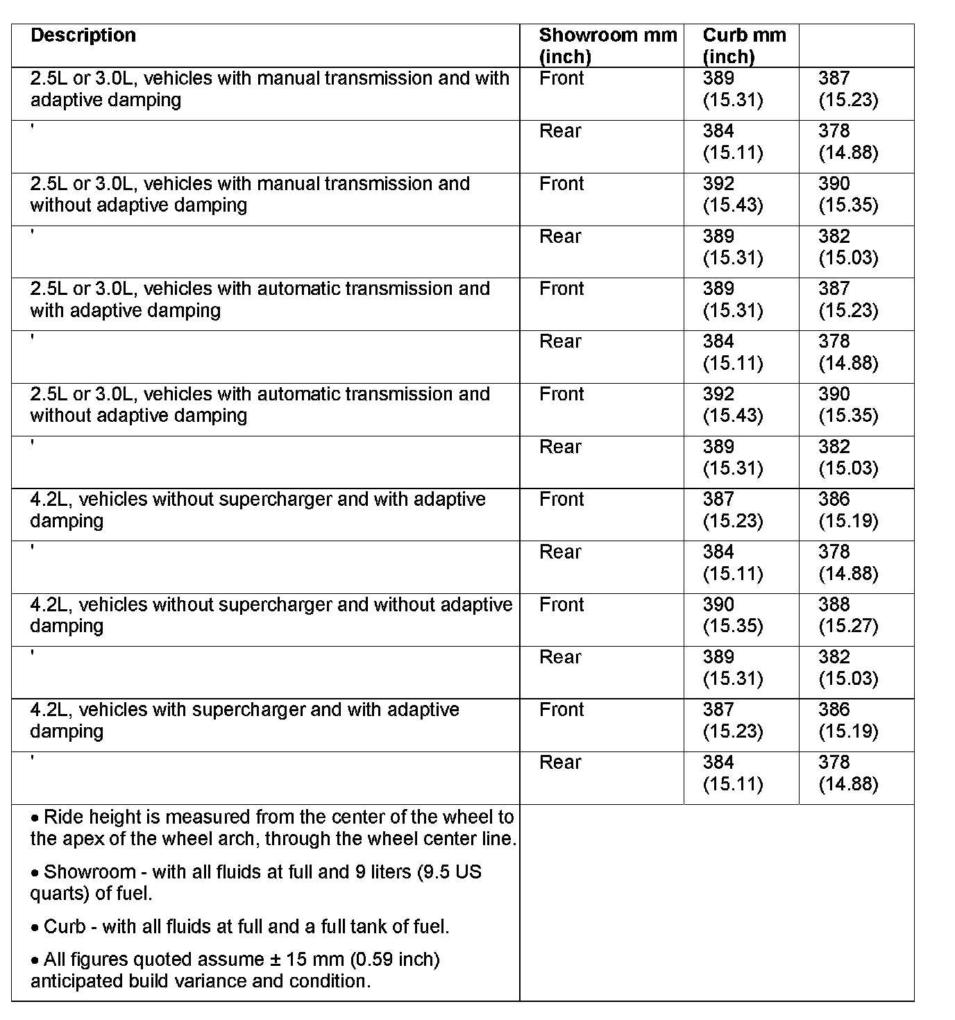 Maximum vehicle attitude = average front - average rear 14.5 mm (0.6 inch)