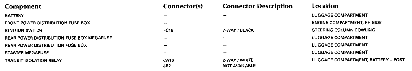Refer to Vehicle/Locations for detailed information and illustrations regarding the location and identification of harnesses, relays, grounds and control modules. Locations