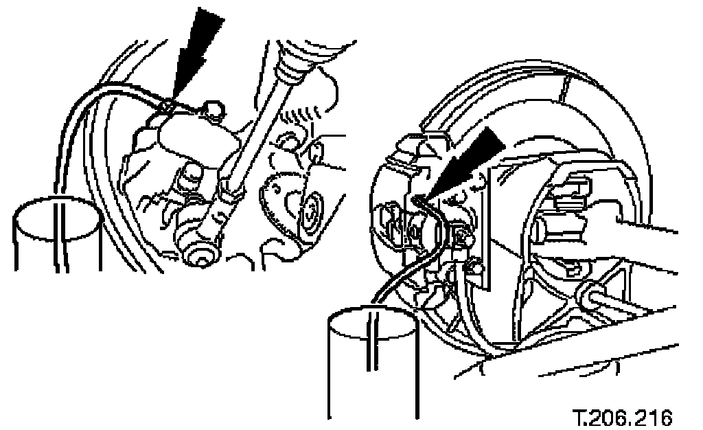 ^ Connect a bleed tube and container to the calipers.