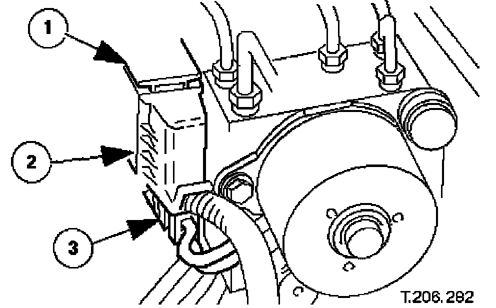 ^ Taking care not to distort brake tubes position HCU into bracket.