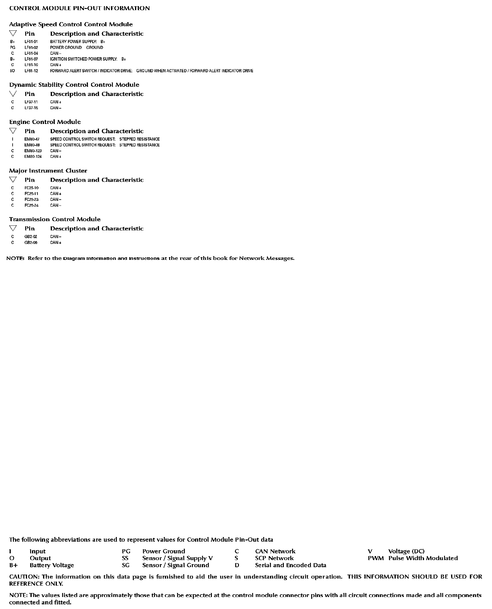 Connector Views: The connector views/pin-outs for the Control Modules depicted within these diagrams can be found at the vehicle level connector views. Connector Views