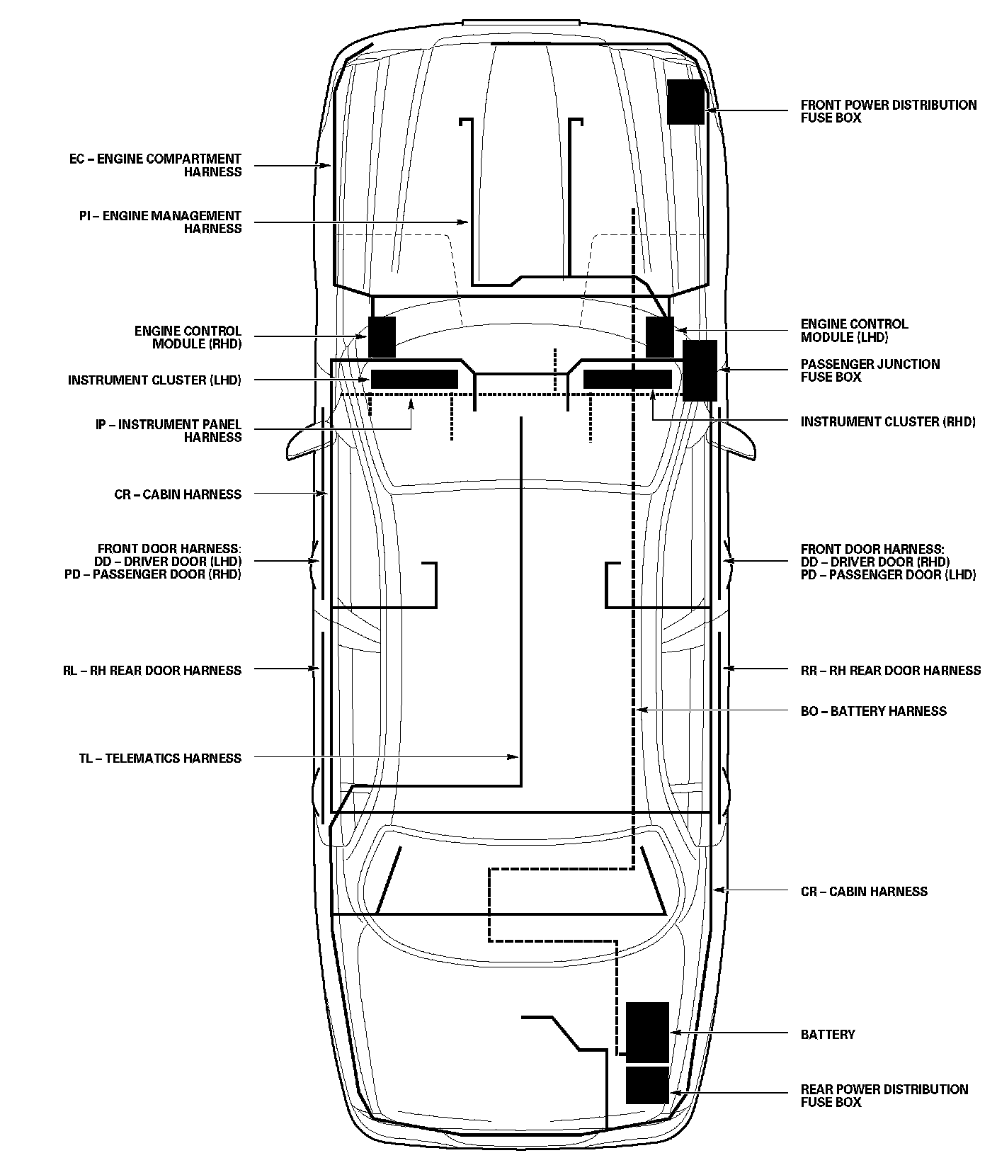 Major Harnesses and Fuse Box Location