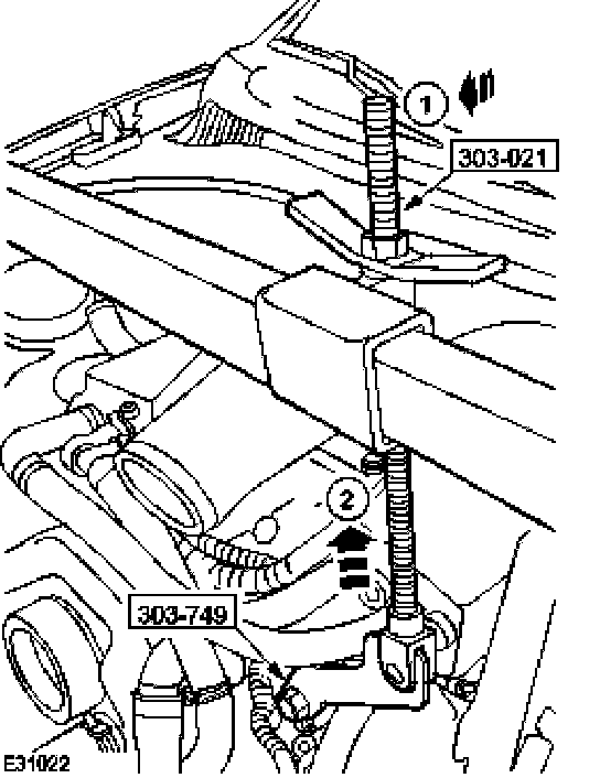 - Adjust the engine support beam (anticlockwise). Lower the engine.