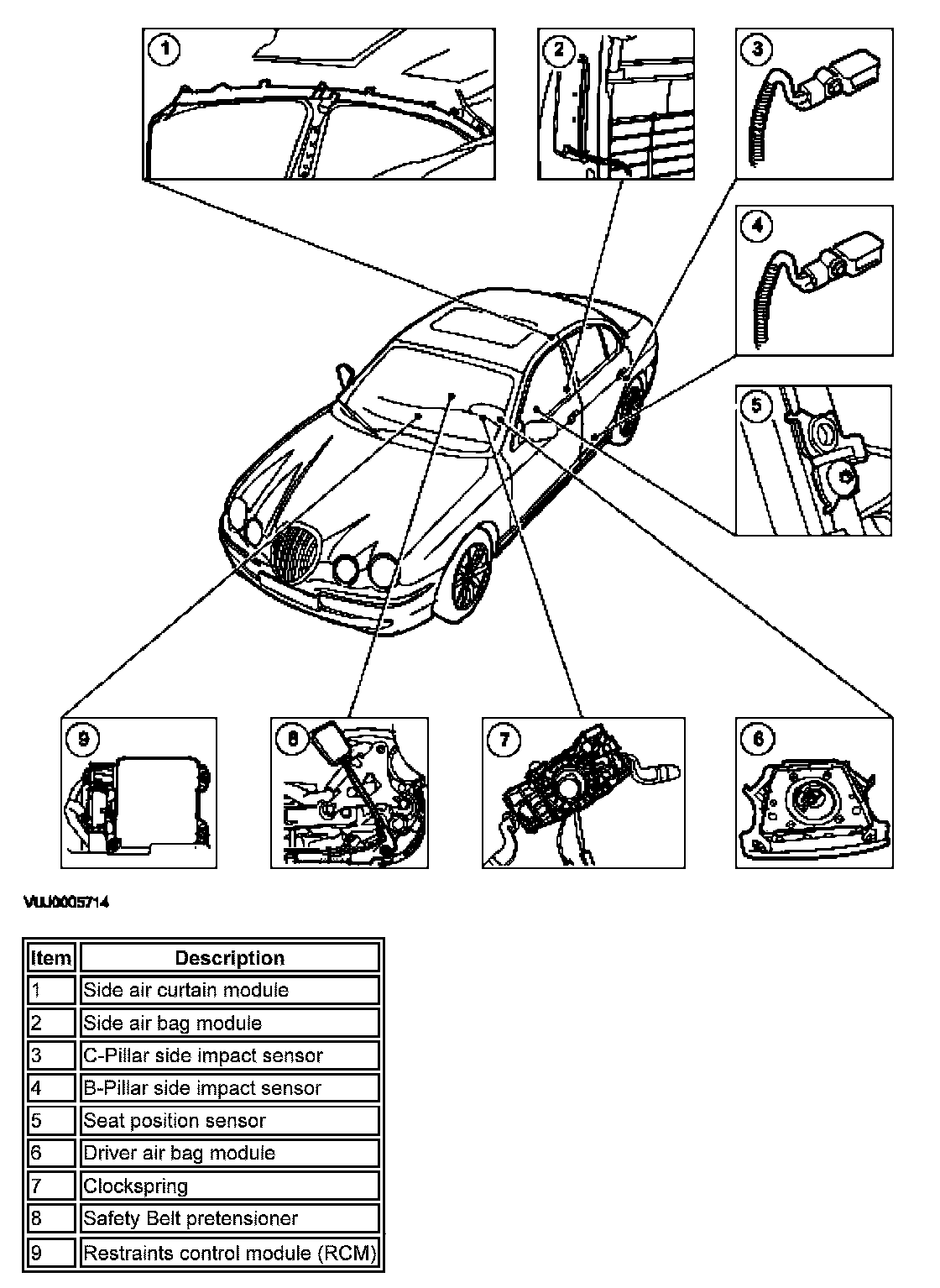 The air bag supplemental restraint system (SRS) components are shown in the following illustrations.