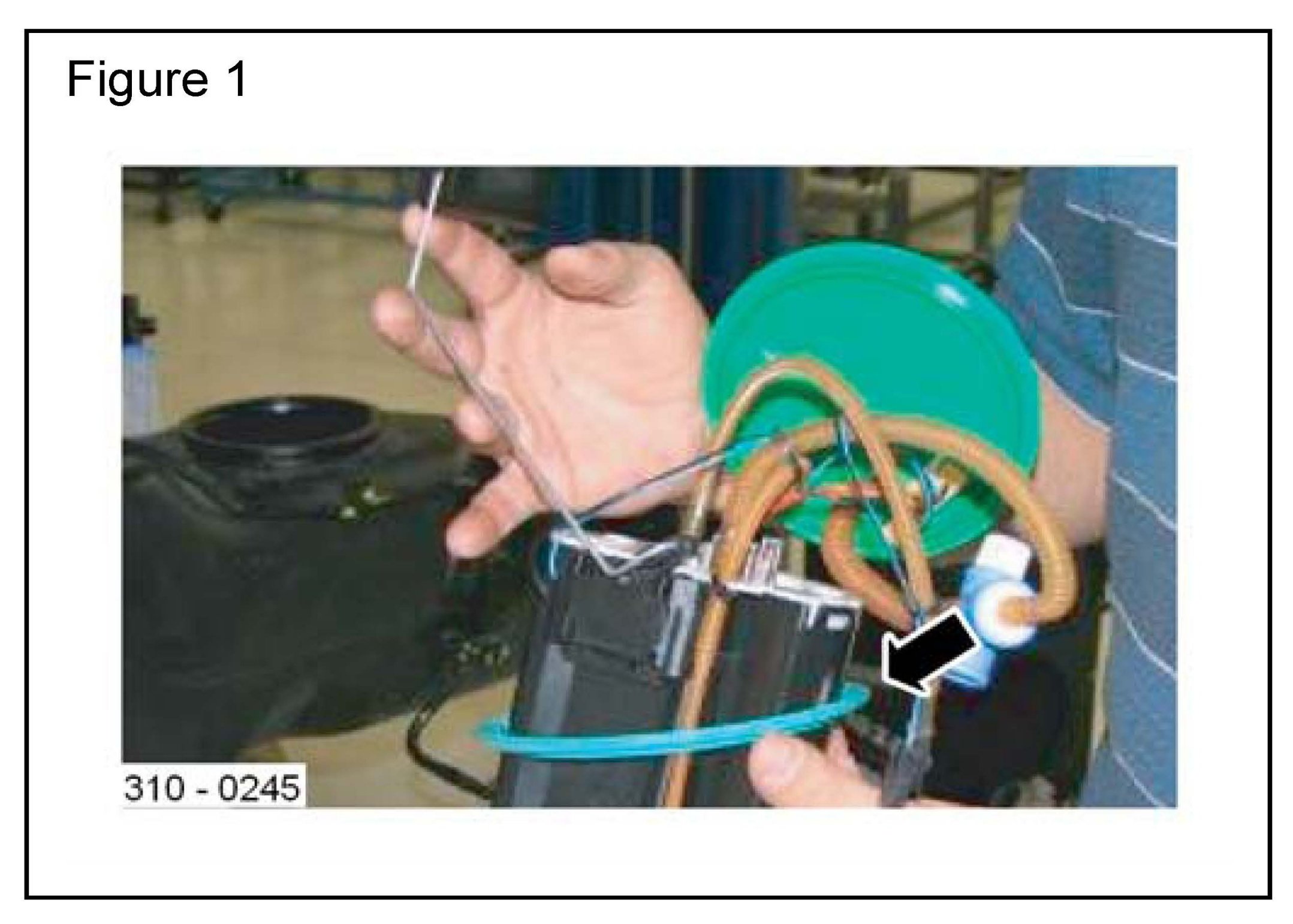 6. If the seal remains attached to the modules, slide the old seals over components (or over the top of the Module Flange) and remove, being careful not to bend the fuel level sender arm. (Figure 1)