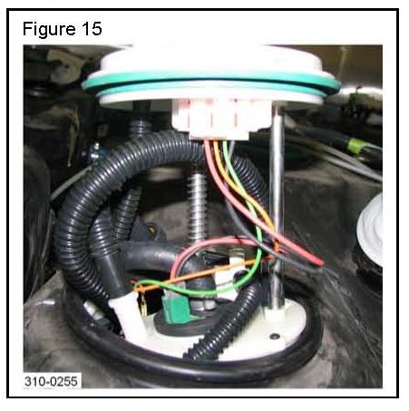Fuel pump assembly pipes must be correctly oriented during pump assembly to the tank. (Figure 15)
