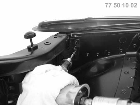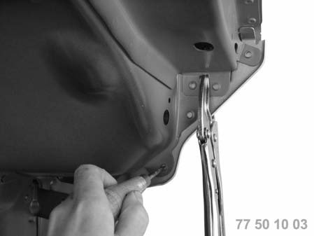 - 6 x Hemlok 817 between crossmember radiator panel rear brackets and reinforcement fender panel.