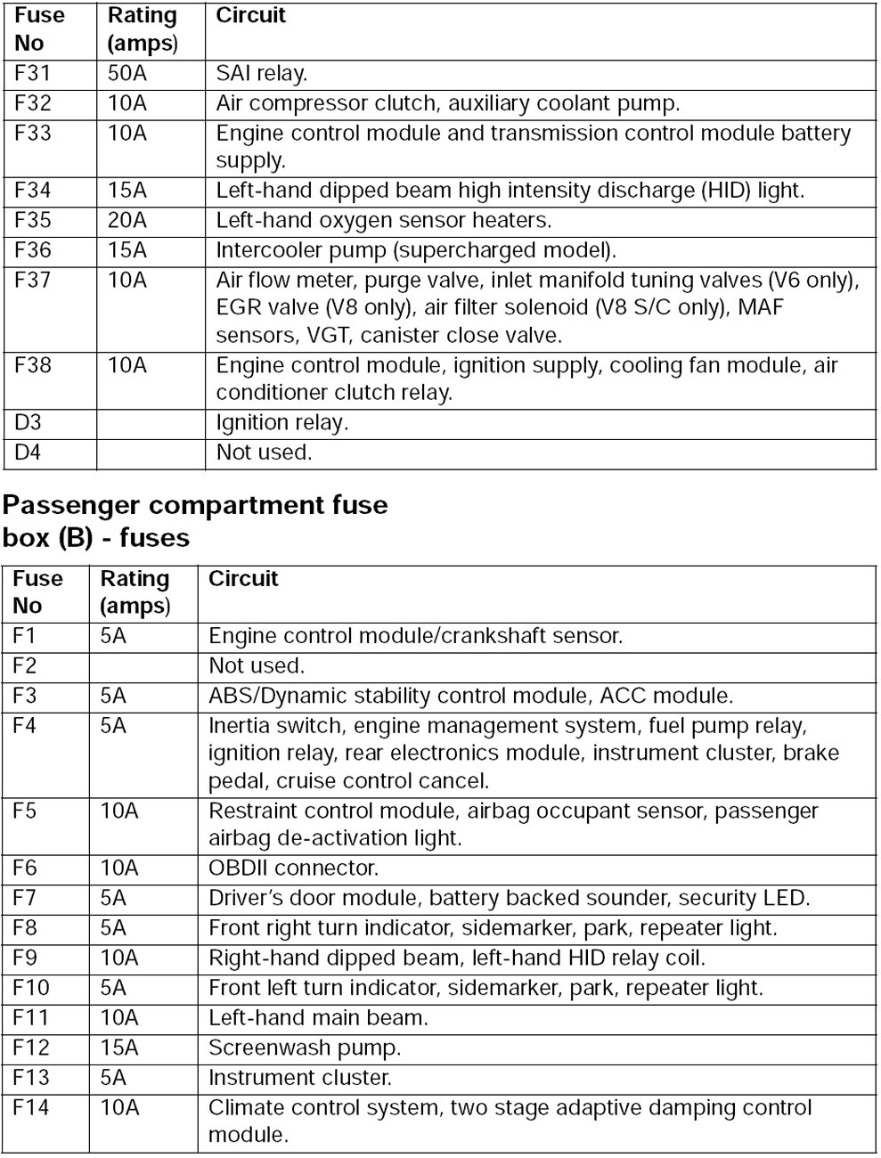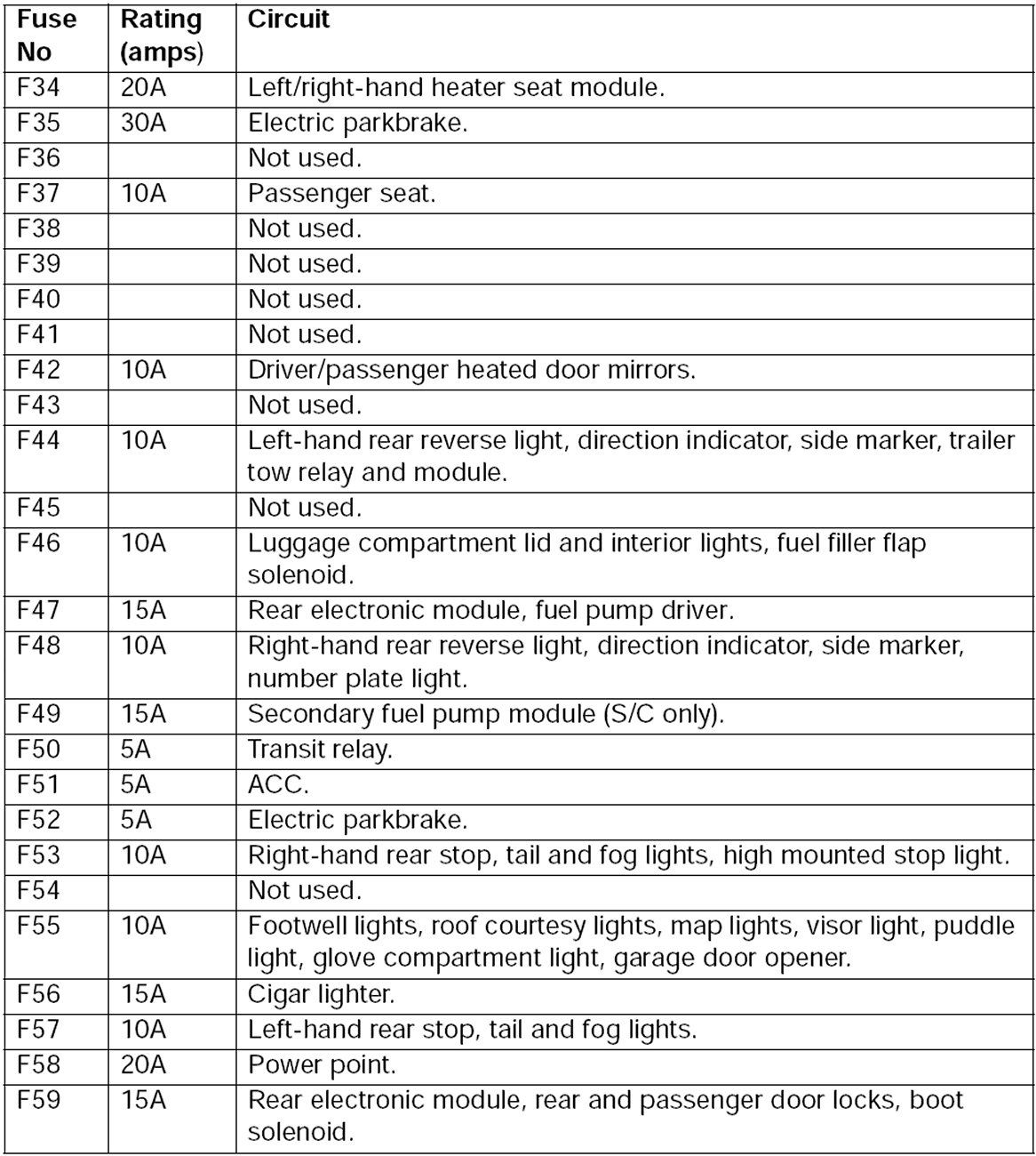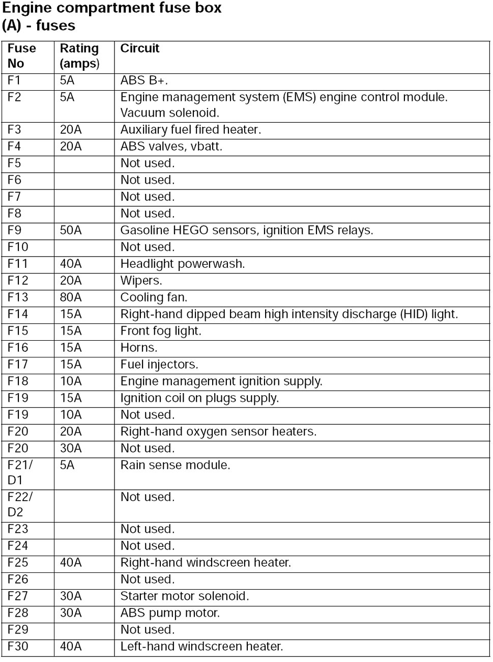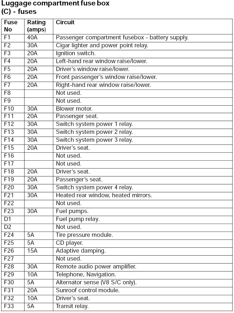 Fuse Box Fuse Assignments