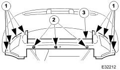 1. Remove front bolts (one bolt on convertible vehicles).