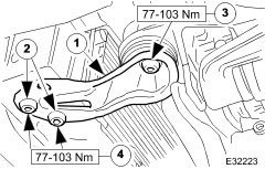 30. CAUTION: Note the position of the fulcrum bolts, as some vehicles are fitted with an eccentric bolt to the rear wishbone arm. See General Procedures section 204-01 form information.