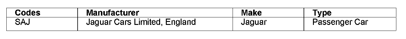 VIN Positions 1, 2 and 3