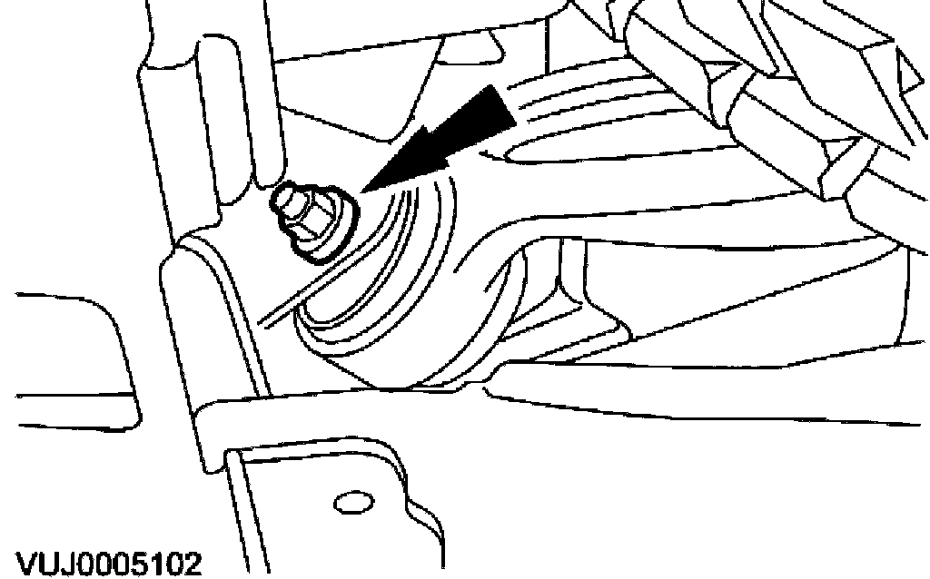 Loosen the rear lower arm lock nut.