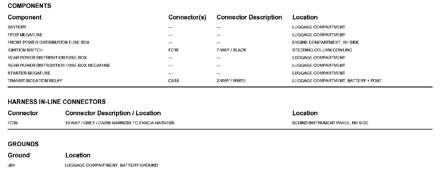 Locations: The location views for Ground Points, In-Line Harness Connectors, Harnesses, and Control Modules depicted within these diagrams can be found at Vehicle/Locations. Locations