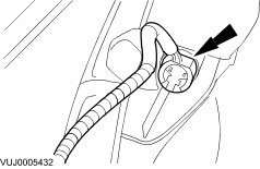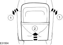 - Pass the front seat backrest trim panel retaining strap through the front seat backrest.