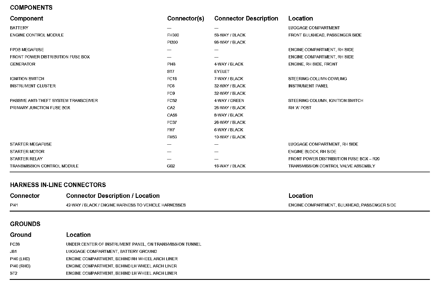 Locations: The location views for Ground Points, In-Line Harness Connectors, Harnesses, and Control Modules depicted within these diagrams can be found at Vehicle/Locations. Locations