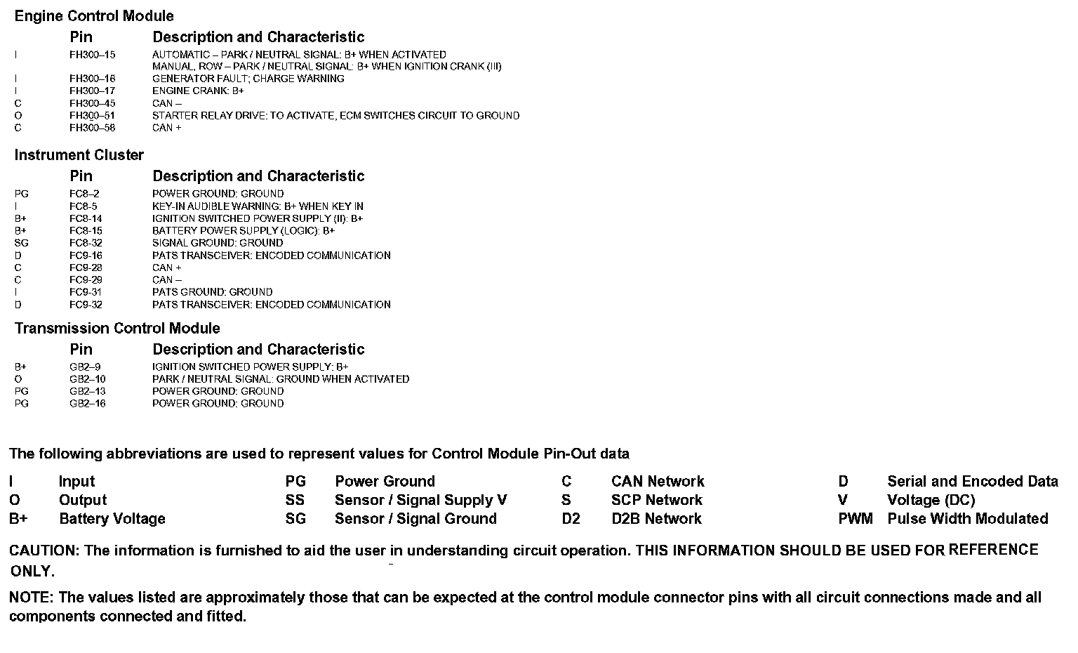 Connector Views: The connector views/pin-outs for the Control Modules depicted within these diagrams can be found at the vehicle level connector views. Connector Views