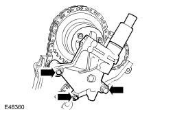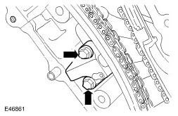 11. Install the RH secondary timing chain tensioner retaining bolts.