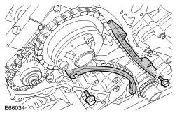 14. Remove the LH upper and lower primary timing chain tensioner guides.