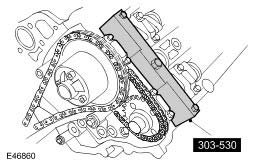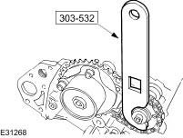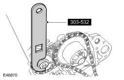 8. CAUTION: Using the special tool, apply force to the tool in a counter-clockwise direction, to tension the primary timing chain on its drive side.