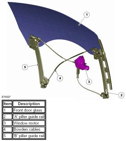 NOTE: Before commencing work within a door interior, all Warnings and Notes within the appropriate Removal and Installation procedures must be read and fully understood.