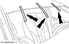 9. Remove protective tape from leading edge of headlining.