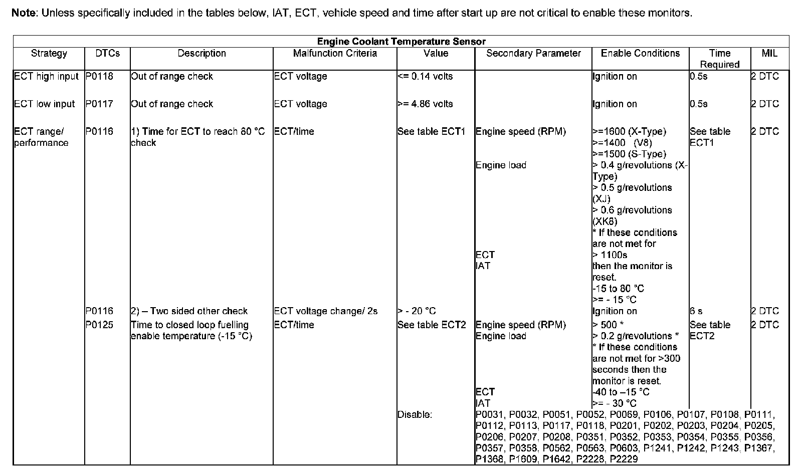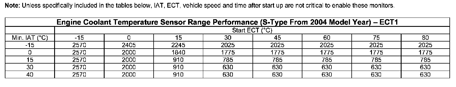 There are two parts to the range/performance monitor. The first part ensures that the ECT reaches the level required for closed loop fuelling. The second part ensures that the ECT reaches 80�C. Both parts of the monitor operate with the same strategy, are one shot monitors and each part has its own calibration values. If the ECT and intake air temperature are above the required level for each monitor part then the following strategy will be carried out otherwise the counters for that monitor part are reset.