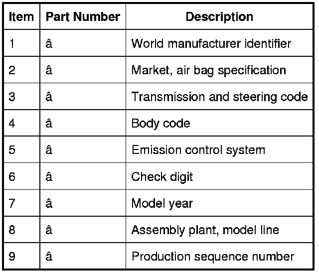 Vehicle Identification Number (Typical)