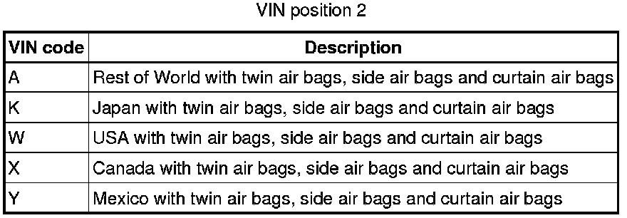 Body Code - All except USA and Canada 2010 model year