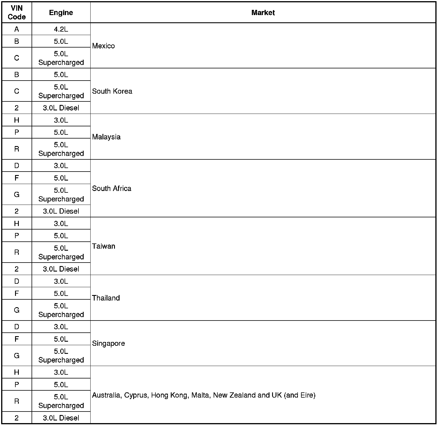 Engine Number - 3.0L Diesel