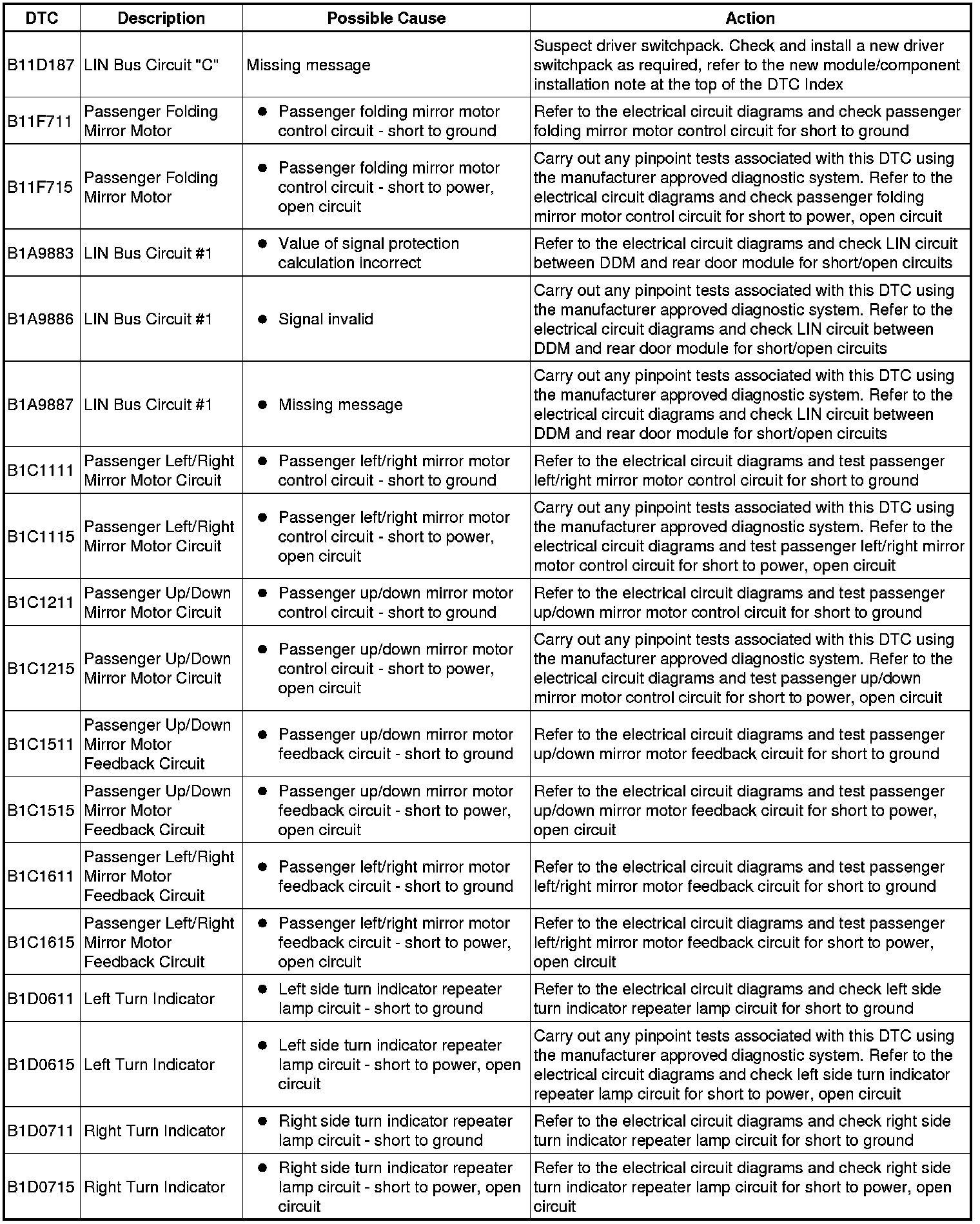 Generic scan tools may not read the codes listed, or may read only five digit codes. Match the five digits from the scan tool to the first five digits of the seven digit code listed to identify the fault (the last two digits give additional information read by the manufacturer approved diagnostic system).