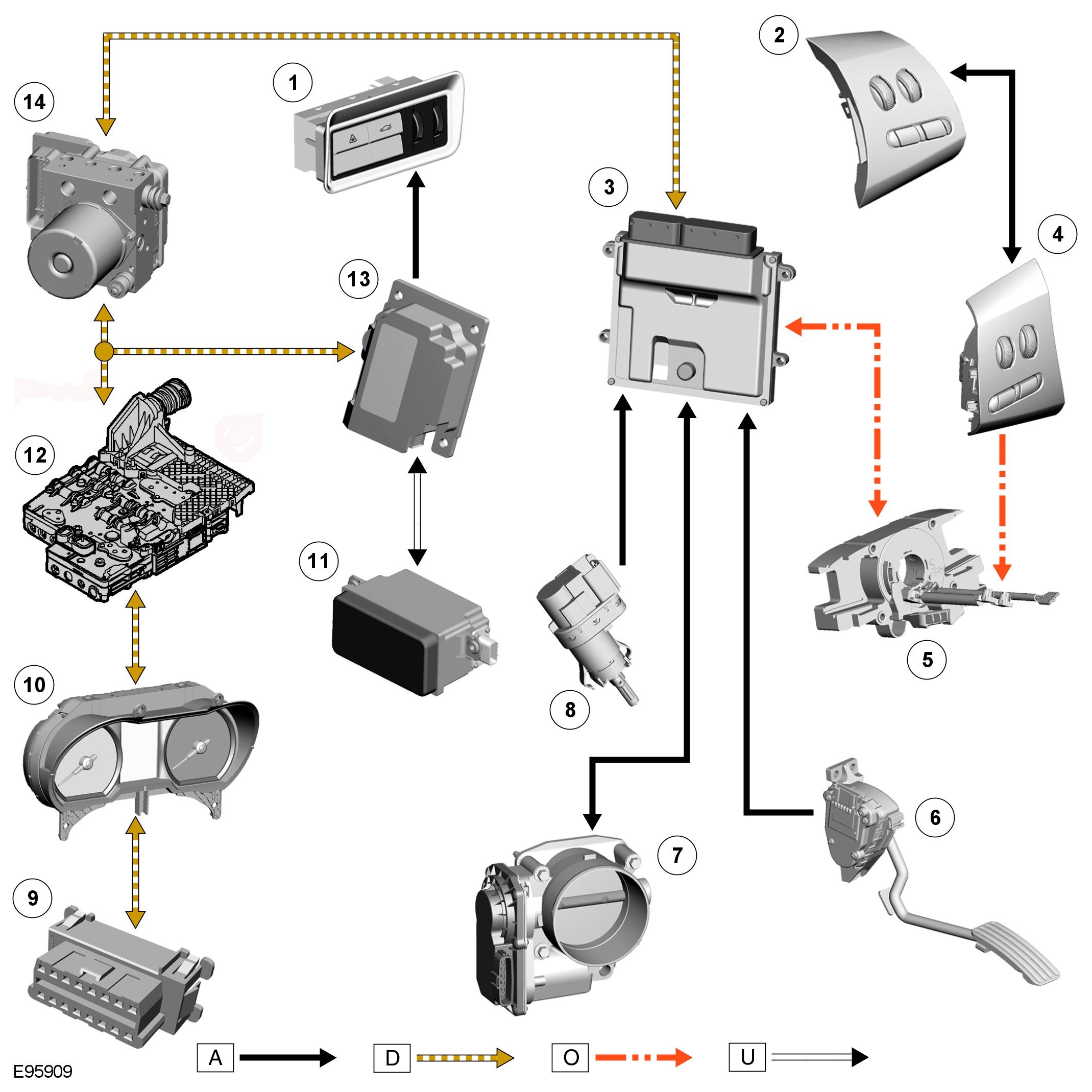 A = Hardwired; D = High speed CAN (controller area network) bus; O = LIN bus; U = Private CAN (controller area network) bus
